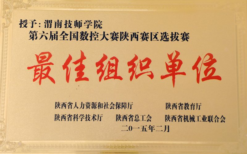 第六屆全國數(shù)控大賽陜西賽區(qū)選撥賽最佳組織單位