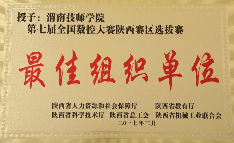 第七屆全國數(shù)控大賽陜西賽區(qū)選撥賽最佳組織單位