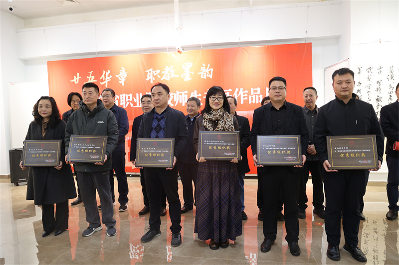 省中華職業(yè)教育社副主任、秘書長王彥平宣布展覽開幕。活動現(xiàn)場宣讀了獲獎名單,并為優(yōu)秀組織單位及個人一等獎獲得者頒獎。我院榮獲“優(yōu)秀組織獎”,3名教師斬獲個人獎項。頒獎后,我院師生共同參觀了書畫展區(qū),欣賞佳作,品味墨韻,感受藝術(shù)的無窮魅力。