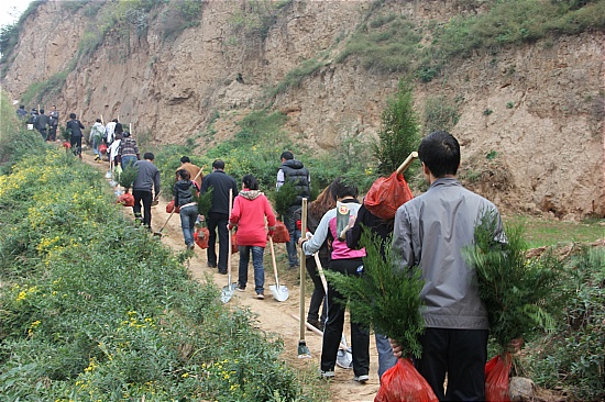 黨員干部齊植樹,南塬溝里添新綠。按照市綠化委員會關(guān)于《渭南市市級部門包聯(lián)城區(qū)南塬侵蝕溝綠化工程實施方案》的要求,我院迅速成立南塬綠化工作領(lǐng)導(dǎo)小組,動員安排。10月21日,院黨委副書記李東旺帶領(lǐng)全院黨員干部前往指定地點——南塬侵蝕溝進行義務(wù)植樹。 栽植過程中,全院黨員干部充分展示了良好的精神面貌,盡管秋寒坡峭,但是大家植樹綠化的熱情不減、干勁十足,有的挖坑,有的扶樹苗,有的填土,大家都不怕臟、不怕累,相互協(xié)作,密切配合,嚴(yán)格按照標(biāo)準(zhǔn)的植樹方法和流程,高效率地完成了植樹任務(wù)。