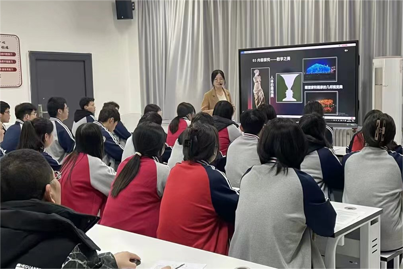 靳燕老師以課文《科學(xué)是美麗的》為主講內(nèi)容,利用多媒體向大家展現(xiàn)了一場(chǎng)精彩的課堂。靳燕老師首先從同學(xué)們對(duì)科學(xué)的認(rèn)識(shí)和精美的圖片引入本課內(nèi)容,以議論文文體知識(shí)為基礎(chǔ),引導(dǎo)學(xué)生把握課文結(jié)構(gòu),通過(guò)豐富典型的案例,使學(xué)生逐步掌握“科學(xué)之所以美麗”的論證過(guò)程和論證方法,最后以一張思維導(dǎo)圖完成對(duì)本節(jié)課的全面總結(jié)。本次公開(kāi)課關(guān)注文本特色,緊扣教學(xué)目標(biāo),突出重難點(diǎn),層層深入激發(fā)學(xué)生興趣,調(diào)動(dòng)學(xué)生積極性,課堂氣氛活躍,教學(xué)效果顯著。 課后,教師們針對(duì)本次公開(kāi)課展開(kāi)探討,姜葉萍老師從課件設(shè)計(jì)、結(jié)構(gòu)安排、問(wèn)題引導(dǎo)、師生互動(dòng)等多方面指出了改進(jìn)意見(jiàn),李寧老師認(rèn)為本次課程在思政內(nèi)容設(shè)計(jì)上具有非常好的借鑒意義,張寧寧老師從教法運(yùn)用、細(xì)節(jié)把控等方面提出了寶貴的意見(jiàn)。