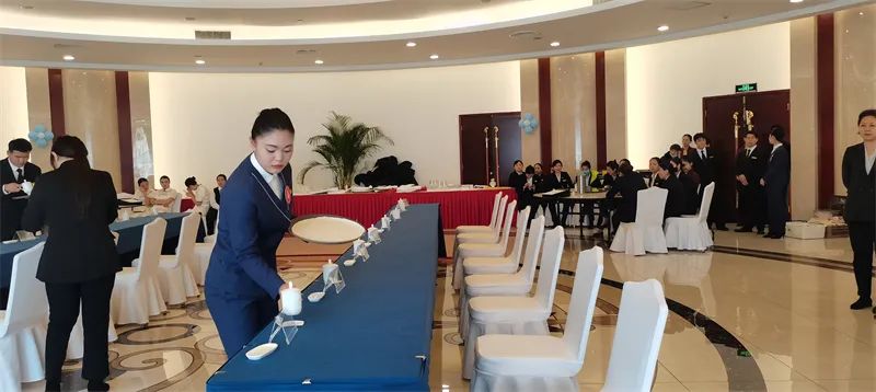 政務接待、禮賓崗實習生進行禮儀及會務擺臺比賽 賽場內,我院實習學生身著制服,舉手投足間盡顯文明禮儀和職業(yè)素養(yǎng),每位選手在比賽中都充分展現(xiàn)了所學專業(yè)知識與實習成果。