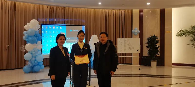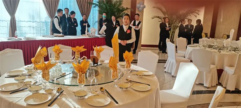 餐飲部實習同學進行了餐飯擺臺比賽 經過3個小時的精彩比拼,高星級飯店2201班羅紫怡獲得冠軍,孟欣怡、楊佳茜獲得二等獎,酒店2101班楊陽、陳一鳴、郭詩玥(高星級飯店2201班)三人獲得三等獎,酒店2201班李家琪、崔佳佳、惠雨孳三人獲得優(yōu)勝獎。陜西賓館領導和系處領導老師共同為獲獎選手頒發(fā)了榮譽證書。