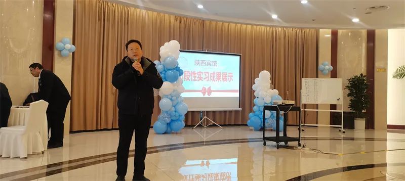 陜西賓館副總經理曲麗萍進行了總結點評,對我院學生的表現(xiàn)給予充分的肯定,感謝學院的大力支持,希望雙方進一步加強合作,共同為陜西發(fā)展培養(yǎng)更多優(yōu)秀的技能人才。白主任受邀進行了講話,他對陜西賓館成功舉行本次活動表示祝賀,對賓館的各位領導和師傅們對實習生的指導和付出表示感謝!勉勵同學們珍惜實習時間和實習平臺,服從管理、苦練技能,不斷取得更大進步。