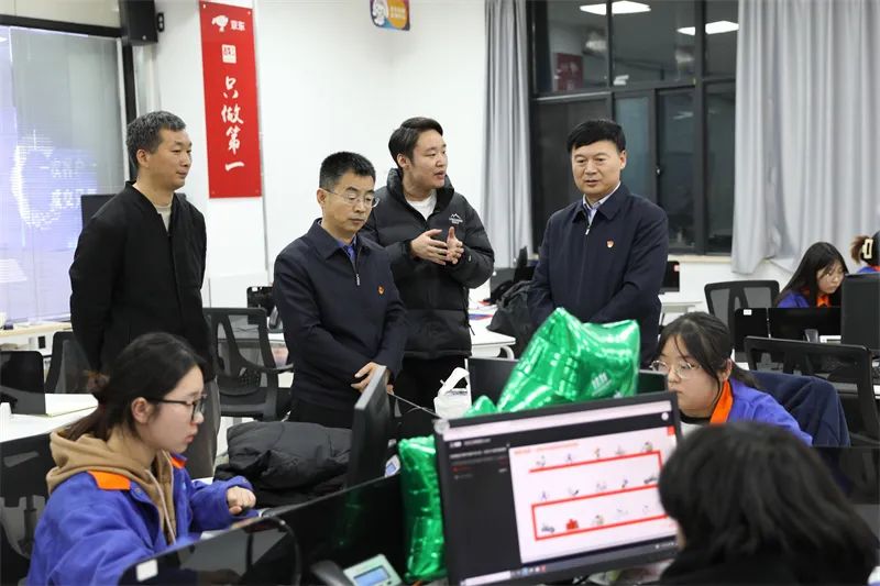 12月11日晚,黨委書記曲志勇,黨委副書記、院長張君升一行來到京東電子商務(wù)實(shí)訓(xùn)基地看望慰問正在奮戰(zhàn)京東“雙十二”客服實(shí)訓(xùn)的電子商務(wù)專業(yè)師生。電信工程系負(fù)責(zé)人馬建紅、教學(xué)副科長王爭艷陪同。