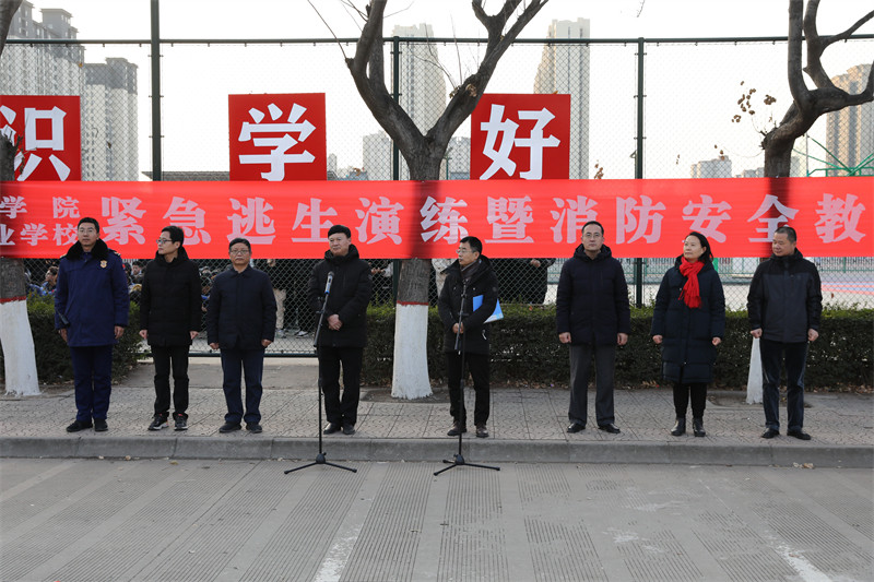 樹(shù)立安全防范意識(shí),構(gòu)建平安和諧校園。為進(jìn)一步提高全院師生的緊急逃生技能,學(xué)會(huì)使用消防器材,普及消防安全知識(shí),提高風(fēng)險(xiǎn)防范意識(shí)和自救互救等突發(fā)事件應(yīng)變能力,12月20日下午,學(xué)院與高新消防大隊(duì)聯(lián)合舉辦消防應(yīng)急疏散演練活動(dòng)。黨委書(shū)記曲志勇出席并宣布演練活動(dòng)開(kāi)始。黨委副書(shū)記、院長(zhǎng)張君升擔(dān)任本次演練活動(dòng)總指揮。黨委委員、副院長(zhǎng)胡忠民,黨委副書(shū)記蔡小倫,黨委委員、副院長(zhǎng)張衛(wèi)龍、石曉蘭,黨委委員、總會(huì)計(jì)師邢毅,渭南高新區(qū)應(yīng)急救援中隊(duì)指導(dǎo)員馮帆,副站長(zhǎng)魏晨曦,學(xué)生處、保衛(wèi)處全體人員,2022級(jí)1500余名學(xué)生參加活動(dòng);顒(dòng)由保衛(wèi)處處長(zhǎng)李向陽(yáng)主持。