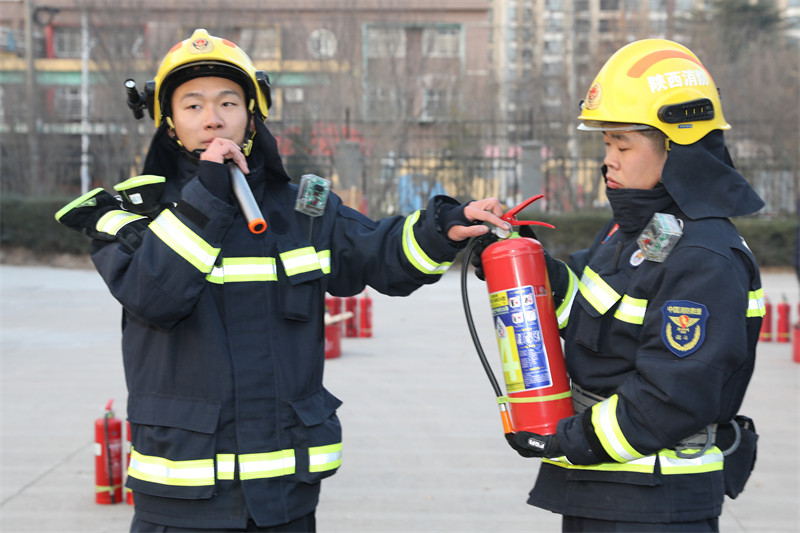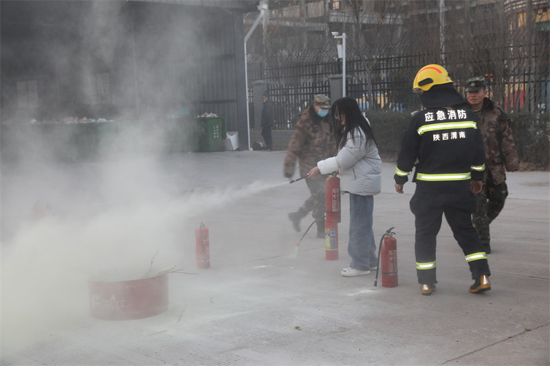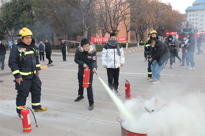 疏散演練結(jié)束后,渭南市高新區(qū)消防大隊(duì)消防員講解了滅火器的正確使用方法,對(duì)滅火器的構(gòu)成、滅火原理及使用時(shí)的注意事項(xiàng)進(jìn)行了科普,讓全體師生快速以口訣的形式記住使用滅火器的技巧:一搖、二對(duì)、三拔、四壓。之后,多名學(xué)生代表進(jìn)行了消防滅火器的現(xiàn)場(chǎng)實(shí)踐。