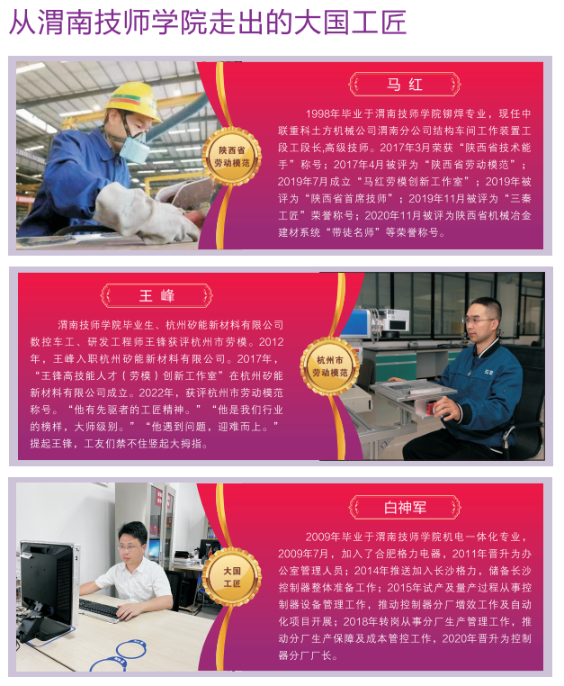 扎實開展提質(zhì)培優(yōu)推進年、教學(xué)改革突破年、干部作風(fēng)能力提升年“三個年”活動,以教學(xué)“六抓六促”專項行動為抓手,提高辦學(xué)質(zhì)量,實施人才強!半p百人才”工程,不斷充實人才儲備,壯大師資力量。引進高層次、高技能人才22名;優(yōu)化學(xué)院專業(yè)(學(xué)科)教研組,召開教研組組長選聘動員大會,公開選聘18名教研組組長,確保各類教研活動順利開展;深化一體化教學(xué)改革,印發(fā)《一體化教學(xué)資源優(yōu)化重組配置方案》,調(diào)配32個一體化教室,落實一線教師的崗位調(diào)動,最大限度發(fā)揮教學(xué)資源和人力資源效能;召開教師節(jié)表彰大會、“七·一”表彰大會,樹立身邊的典型;開展觀摩教學(xué)、推門聽課、同課異構(gòu)等活動,嚴抓常規(guī)教學(xué)管理;2名老師分別獲評省級技能大師工作室領(lǐng)頭人、“陜西省首席技師”,2人榮獲陜西省“思政課程教學(xué)標兵”稱號,2人代表渭南市參加省思政課程和課程思政展示活動,3人榮獲“陜西省教學(xué)能手”稱號,30余人在省市技能大賽中獲獎;學(xué)生王子堯在第二屆全國技能大賽陜西省選拔賽中獲得第一名,汪杰老師代表陜西省參加國家技能大賽;1個大師工作室獲批省級技能大師工作室建設(shè)項目單位;數(shù)控技術(shù)應(yīng)用、機電一體化、計算機網(wǎng)絡(luò)三個專業(yè)被人社部確立為全國技工院校工學(xué)一體化專業(yè)試點學(xué)校;學(xué)院被省教育廳確定為“雙示范”學(xué)校,被人社部再次確定為國家高技能人才培訓(xùn)基地。