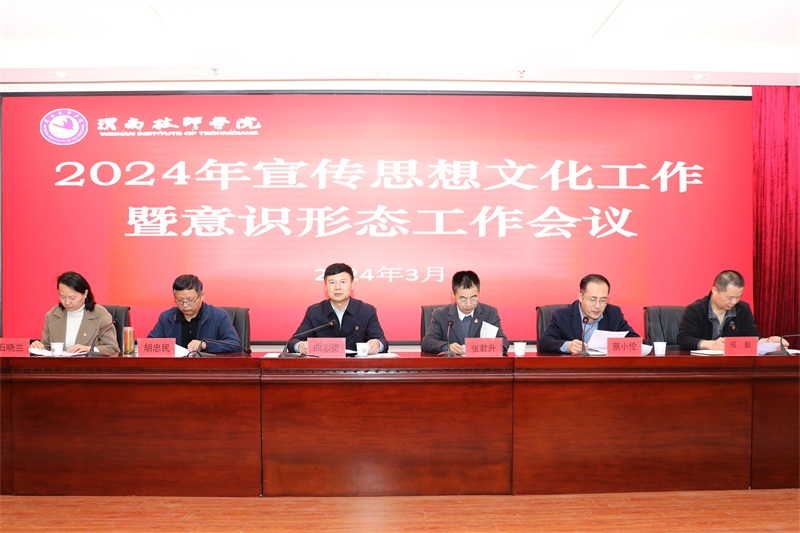 曲志勇在總結(jié)講話中指出,習(xí)近平文化思想是習(xí)近平新時(shí)代中國(guó)特色社會(huì)主義思想的文化篇,為我們?cè)谛聲r(shí)代新征程做好宣傳思想文化工作提供了強(qiáng)大思想武器和科學(xué)行動(dòng)指南,要高舉旗幟,深學(xué)細(xì)悟習(xí)近平文化思想,明確新的文化使命。并就做好今年的宣傳思想文化和意識(shí)形態(tài)工作提出三點(diǎn)要求。一是堅(jiān)持舉旗幟抓導(dǎo)向,把握正確政治方向,堅(jiān)定不移地用習(xí)近平新時(shí)代中國(guó)特色社會(huì)主義思想引領(lǐng)工作。要堅(jiān)定擁護(hù)“兩個(gè)確立”、堅(jiān)決做到“兩個(gè)維護(hù)”,牢牢把握教育的政治屬性,堅(jiān)定不移為人民服務(wù),為社會(huì)主義服務(wù),培養(yǎng)德智體美勞全面發(fā)展的社會(huì)主義合格建設(shè)者和接班人;要全面貫徹落實(shí)黨的教育方針,服務(wù)職業(yè)教育國(guó)家發(fā)展戰(zhàn)略,在教育教學(xué)中抓落實(shí),在宣傳思想中抓貫徹,為國(guó)家大政方針的貫徹落實(shí)和全面實(shí)施提供輿論宣傳和思想保證。二是聚焦中心大局,持續(xù)鞏固壯大主流思想輿論,牢牢把握宣傳思想文化和意識(shí)形態(tài)工作領(lǐng)導(dǎo)權(quán)和主動(dòng)權(quán)。要持續(xù)在強(qiáng)化理論武裝,壓實(shí)意識(shí)形態(tài)工作責(zé)任制,在加強(qiáng)新聞宣傳等方面下功夫、求突破、出實(shí)招;要深刻認(rèn)識(shí)意識(shí)形態(tài)工作的極端重要性,壓實(shí)意識(shí)形態(tài)工作責(zé)任制,抓緊抓實(shí)意識(shí)形態(tài)領(lǐng)域各項(xiàng)重點(diǎn)工作;要加強(qiáng)輿情應(yīng)對(duì)與處置,堅(jiān)決防范化解意識(shí)形態(tài)領(lǐng)域風(fēng)險(xiǎn)隱患,守住管好意識(shí)形態(tài)陣地,確保學(xué)院政治安全和意識(shí)形態(tài)安全。三是強(qiáng)化政治意識(shí),落實(shí)主體責(zé)任,奮力開(kāi)創(chuàng)學(xué)院宣傳思想文化和意識(shí)形態(tài)工作的新局面。要加強(qiáng)學(xué)校守正創(chuàng)新、改革發(fā)展、辦學(xué)治校的成就宣傳、經(jīng)驗(yàn)宣傳,典型宣傳,做大做強(qiáng)主流思想輿論,及時(shí)生動(dòng)全面展現(xiàn)形象;要深刻把握新媒體傳播規(guī)律,圍繞黨和國(guó)家大事要事及學(xué)院中心工作,推出一批有深度、廣度、亮度的融媒體作品,構(gòu)建大宣傳格局,講好學(xué)院故事,傳遞學(xué)院聲音,樹(shù)立學(xué)院形象;要堅(jiān)持立德樹(shù)人,加強(qiáng)教學(xué)育人陣地建設(shè),發(fā)揮思政課鑄魂育人主渠道作用,扎實(shí)推動(dòng)習(xí)近平新時(shí)代中國(guó)特色社會(huì)主義思想“三進(jìn)”工作,引導(dǎo)學(xué)生在真學(xué)真懂真信真用上下功夫,使黨的創(chuàng)新理論真正融會(huì)于心、見(jiàn)之于行。