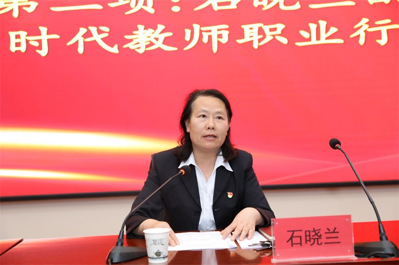 專項教育會上張衛(wèi)龍宣讀了《2023年9月9日習近平致全國優(yōu)秀教師代表的信》。石曉蘭宣讀了《新時代教師職業(yè)行為十項準則》。三位優(yōu)秀教師代表從加強師德師風建設方面做了表態(tài)發(fā)言。
