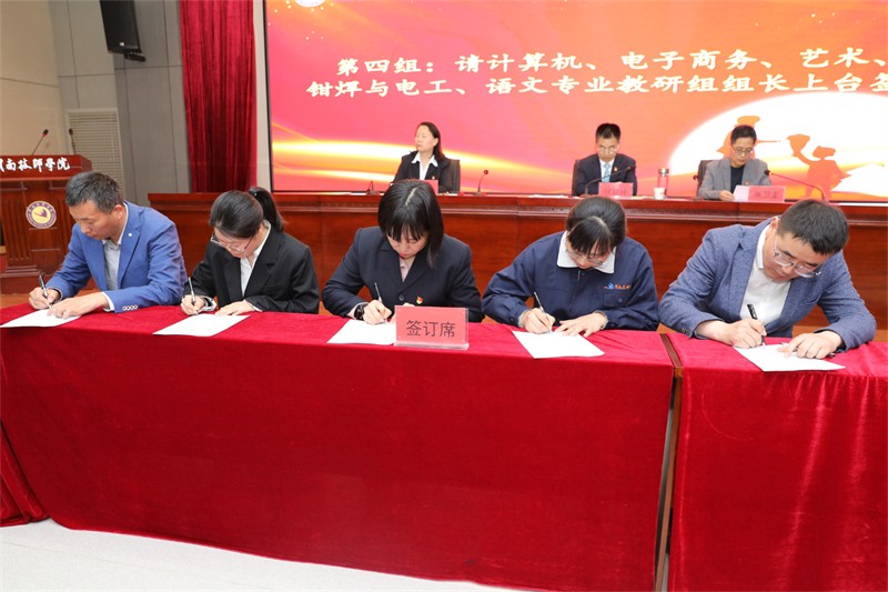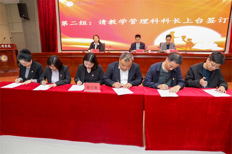 為大力弘揚教育家精神,做新時代的“大先生”,全面加強師德師風建設,健全師德建設長效機制,引導廣大教師以德立身、以德立學、以德施教、以德育德,引導全體教師加強自我修養(yǎng)、潛心教書育人,樹立良好師德形象,努力辦好人民滿意的教育。4月10日下午,學院組織舉辦全院教師“師德師風”專項教育暨承諾書簽名儀式,黨委副書記、院長張君升,黨委委員、副院長張衛(wèi)龍、石曉蘭,各教學部門負責人、教學科長、教研組組長以及教學部門教師代表參加了本次活動;顒佑筛痹洪L張衛(wèi)龍主持。