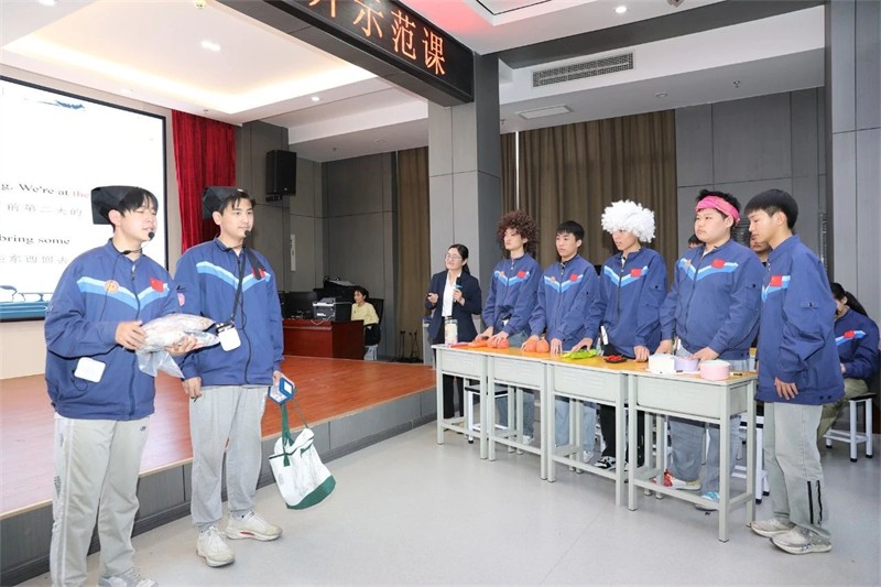 省級教學能手劉曉老師講授《數(shù)字播報“一帶一路”倡議》。劉老師以“數(shù)詞”為核心內容融入“一帶一路”思政元素,用新聞播報的形式導入教學,新穎的情境導入、巧妙的教學設計以及生動活潑的教學氛圍,學生學習效果顯著。劉老師使用道具創(chuàng)設極具趣味的情境,激發(fā)了學生的求知欲、表現(xiàn)欲。學生在快樂的氛圍中感受到了學習的樂趣并收獲了知識。