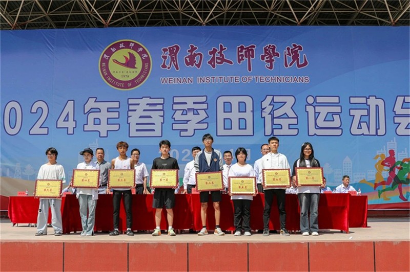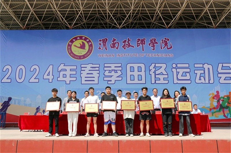 在優(yōu)美的歌曲聲中,各隊運動員依次入場,總裁判長宣布本屆運動會的比賽成績,學院領(lǐng)導(dǎo)為獲獎個人和集體舉行了莊重的頒獎儀式。張君升致閉幕詞,向在本次運動會中取得優(yōu)異成績的代表隊和運動員們表示祝賀,向辛勤付出的全體裁判員、志愿者和工作人員表示感謝,并表示本次運動會準備充分,組織周密、秩序井然,展現(xiàn)了全校師生團結(jié)奮進、勇往直前、追趕超越的精神風貌,是一次團結(jié)的大會、和諧的大會、勝利的大會。他希望同學們將本屆運動會上所展現(xiàn)的永不服輸、一往無前的精神帶到日常的學習生活中去,勤學苦練,勵志成才,努力做德智體美勞全面發(fā)展的新時代技能人才,希望全院廣大教職工把本屆運動會所激發(fā)出的團結(jié)協(xié)作、創(chuàng)先爭優(yōu)的精神,傾注到學院內(nèi)涵建設(shè)中,轉(zhuǎn)化為推動學院高質(zhì)量發(fā)展的強大動力。上午11時,張君升宣布渭南技師學院、渭南工業(yè)學校2024年春季田徑運動會圓滿閉幕。