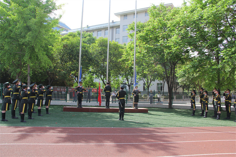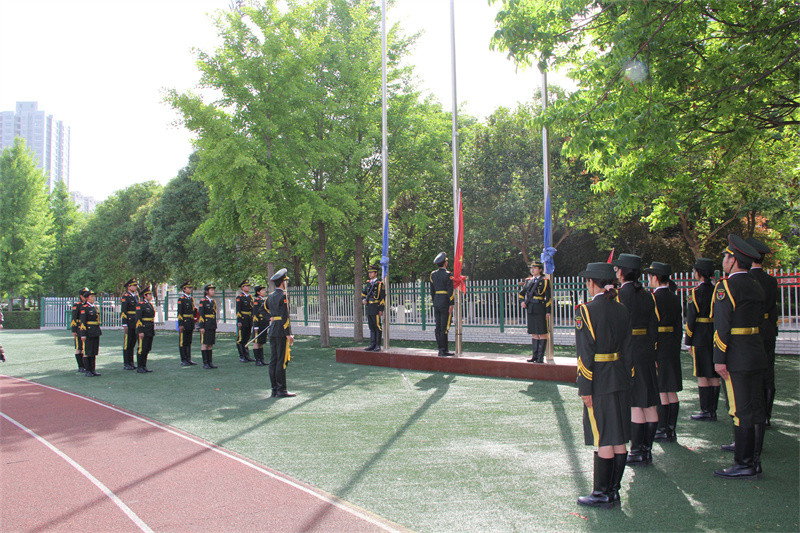 國旗冉冉升起 全體肅立 目光注視著那莊嚴的旗幟 心中滿懷敬意與激動