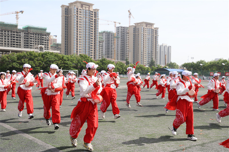 腰鼓隊員們精神飽滿 鏗鏘有力的鼓聲 上下翻飛的紅綢 展現(xiàn)了陜北安塞地方傳統(tǒng)文化的韻味與魅力