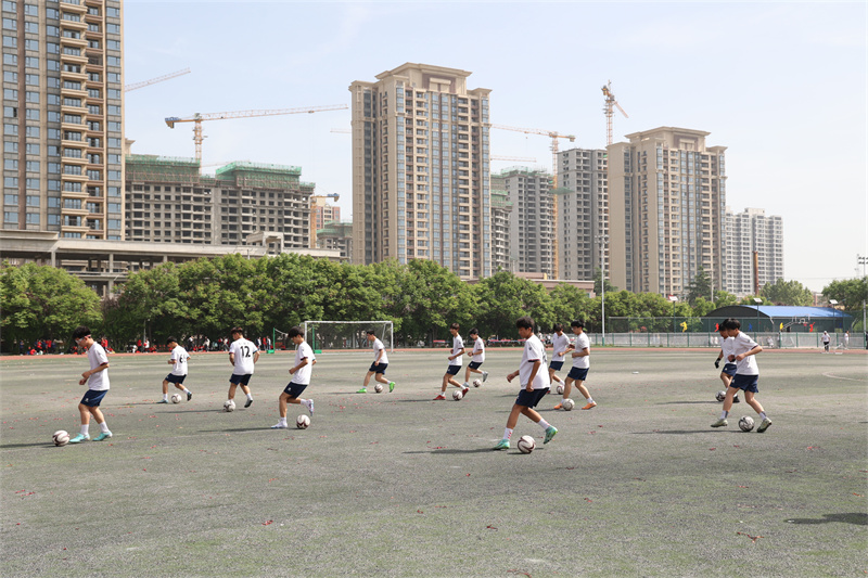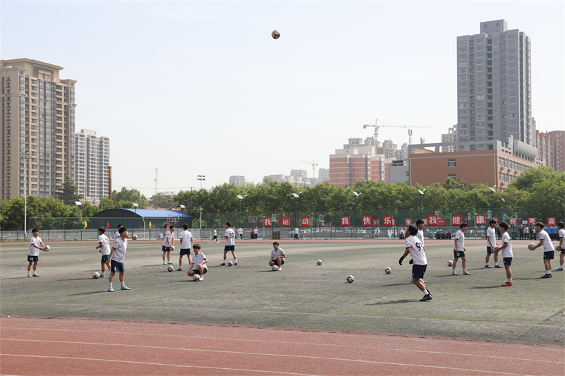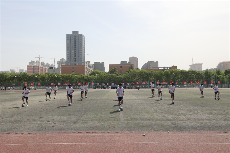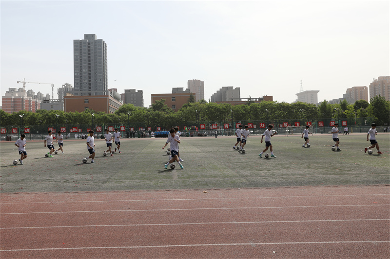 足球少年們 伴隨著青春的節(jié)拍 用整齊劃一的動作 步調(diào)一致的表演 奉獻了一場精彩的足球動作表演