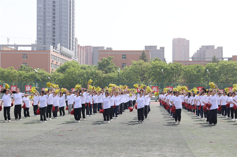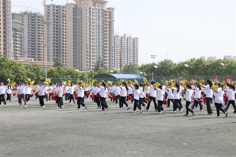 她們激情澎湃、活力四射 手持花球 伴著動感的音樂 彰顯出活力的光芒 為運動會開幕式帶來別具一格的視覺盛宴