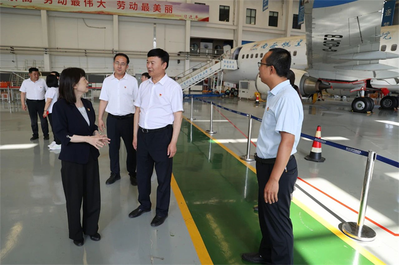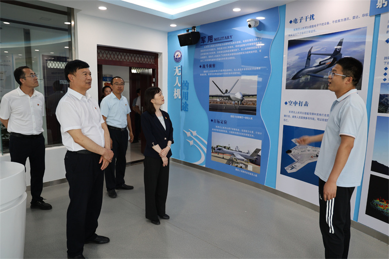 會(huì)后,曲志勇一行在金文書記的陪同下,先后參觀了西航汽車工程實(shí)訓(xùn)基地、無(wú)人機(jī)應(yīng)用服務(wù)中心、通用航空學(xué)院教工支部及黨建活動(dòng)中心,詳細(xì)了解了西航職院在基層黨支部建設(shè)、實(shí)訓(xùn)基地建設(shè)、人才培養(yǎng)模式改革、服務(wù)區(qū)域經(jīng)濟(jì)發(fā)展等方面的具體做法和特色優(yōu)勢(shì)。 曲志勇一行還參觀了“三館”(紅色精神館、航空精神館、廉潔教育館)、“兩坊”(虛擬仿真思政學(xué)坊、紅帆學(xué)社創(chuàng)新工坊)、一廊(馬克思主義中國(guó)化時(shí)代化理論成果廊),沉浸式體驗(yàn)在中國(guó)共產(chǎn)黨的領(lǐng)導(dǎo)下中國(guó)航空工業(yè)由弱變強(qiáng)翻天覆地的變化,真切感受在新時(shí)代習(xí)近平強(qiáng)軍思想指導(dǎo)下我國(guó)航空事業(yè)跨越式發(fā)展,走向強(qiáng)國(guó)強(qiáng)軍的巨大成就。