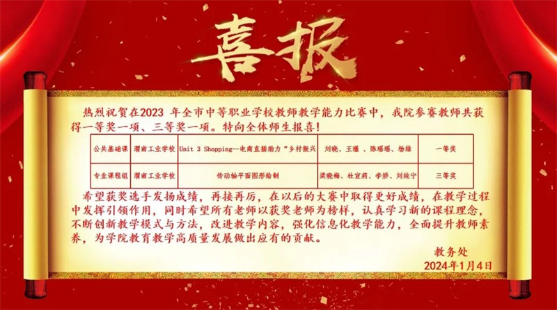 凝心聚力擔(dān)使命,奮楫揚(yáng)帆啟新程;厥2024年,在市委、市政府的堅(jiān)強(qiáng)領(lǐng)導(dǎo)下,我們深入學(xué)習(xí)貫徹習(xí)近平新時(shí)代中國特色社會(huì)主義思想、黨的二十大及二十屆二中、三中全會(huì)精神,全面貫徹落實(shí)黨的教育方針,切實(shí)落實(shí)立德樹人根本任務(wù),圍繞院黨委“112336”工作思路,以“雙優(yōu)!苯ㄔO(shè)為目標(biāo),團(tuán)結(jié)奮進(jìn)、攻堅(jiān)克難,踔厲奮發(fā)、破浪篤行,取得了累累碩果,各項(xiàng)事業(yè)邁入高質(zhì)量發(fā)展新階段。 前期全院師生投票,經(jīng)篩選整理編輯候選條,學(xué)院2024年“十件大事”正式出爐啦! 站在新起點(diǎn),讓我們通過這“十件大事”,一起重溫這一年的奮斗足跡,以更加昂揚(yáng)的姿態(tài),共同邁向嶄新未來!