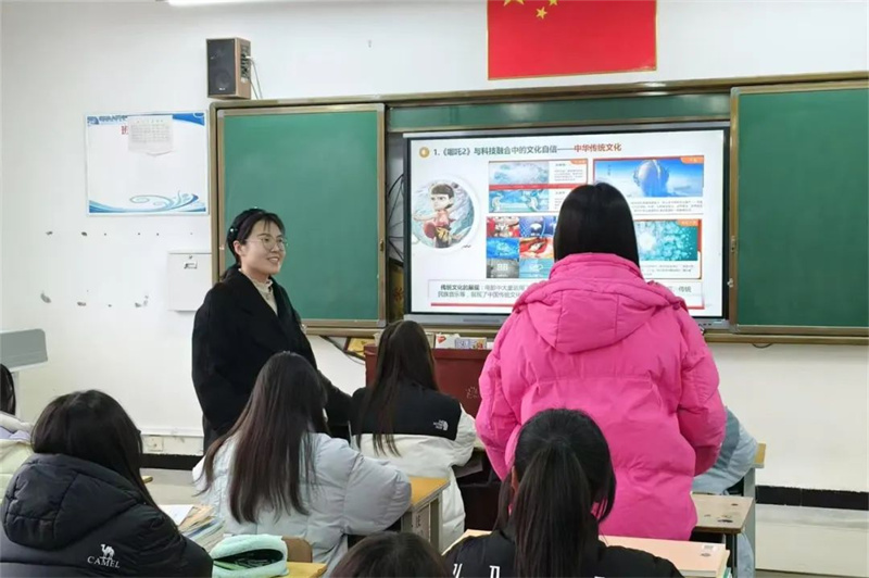 課上,教師圍繞核心主題,通過構(gòu)建多維度教學(xué)架構(gòu),巧妙融入春節(jié)申遺、《哪吒之魔童鬧!菲狈考芽円约癉eepSeek技術(shù)突破等熱點元素。通過詳細闡述春節(jié)申遺的歷程與重大意義,讓同學(xué)們真切感受到文化自信植根于傳統(tǒng)節(jié)慶的集體記憶,彰顯著中華民族的精神標(biāo)識,有效激發(fā)了學(xué)生的文化認同;結(jié)合《哪吒之魔童鬧!放cDeepSeek的案例,深入剖析科技與傳統(tǒng)文化融合的創(chuàng)新模式,引導(dǎo)學(xué)生洞察科技在推動傳統(tǒng)文化發(fā)展中的關(guān)鍵作用,激發(fā)了他們對跨學(xué)科融合創(chuàng)新的思考;借助《哪吒之魔童鬧!穭(chuàng)作團隊的文化創(chuàng)新實踐,鼓勵學(xué)生立足自身專業(yè),將傳統(tǒng)文化融入專業(yè)學(xué)習(xí)與實踐,積極傳播中華文化,激發(fā)了學(xué)生傳承創(chuàng)新的使命感 。